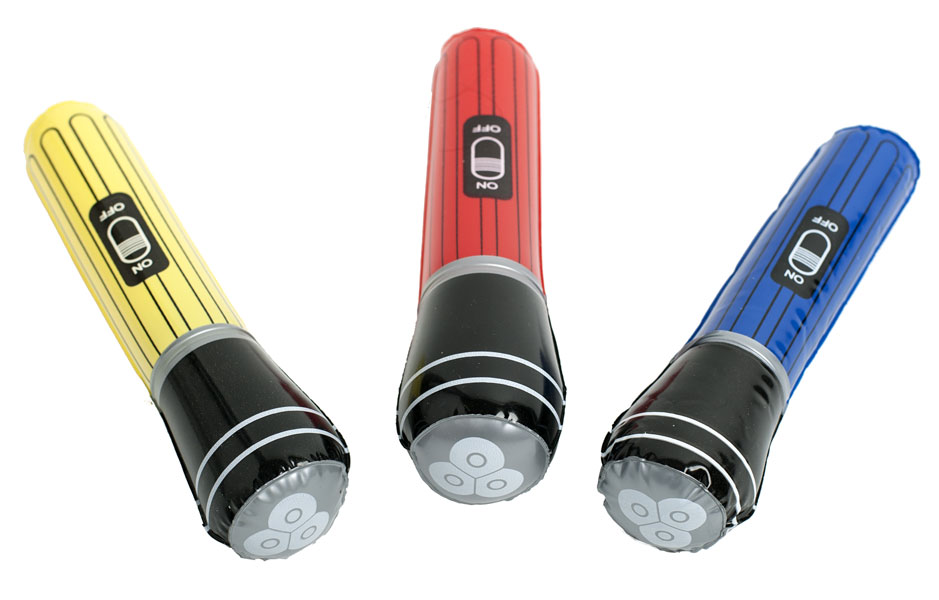 Ideal for use as the baton in a relay game or as props or decorations. Flashlights do not light up. Assorted bright colors. Vinyl. 2¼" x 8½".