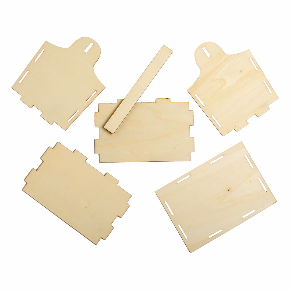 Includes wooden panels and handle. Assemble by inserting tabs into slots. Outlet item. 6¾" x 5⅛" x 6¼".