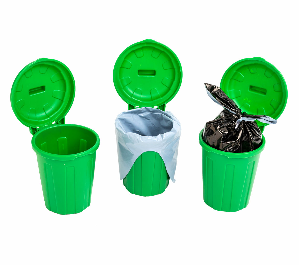 A fun, unique way to store VBS essentials or send treats home. Use together or separately. Trash cans: sturdy plastic, 4" x 4¼". Trash bags: cellophane, 5" x 9½".