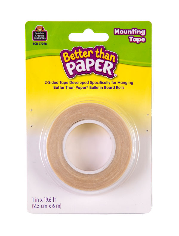 Securely hang your bulletin board rolls with this high-tack double-sided adhesive. Use it on painted brick, painted walls, fabric bulletin boards, cloth cubical walls, whiteboards, wood trim, plastic surfaces, metal doors, and much more! Works with butcher paper, construction paper, and other types of bulletin board paper. Measures 1 in x 19.6 ft.